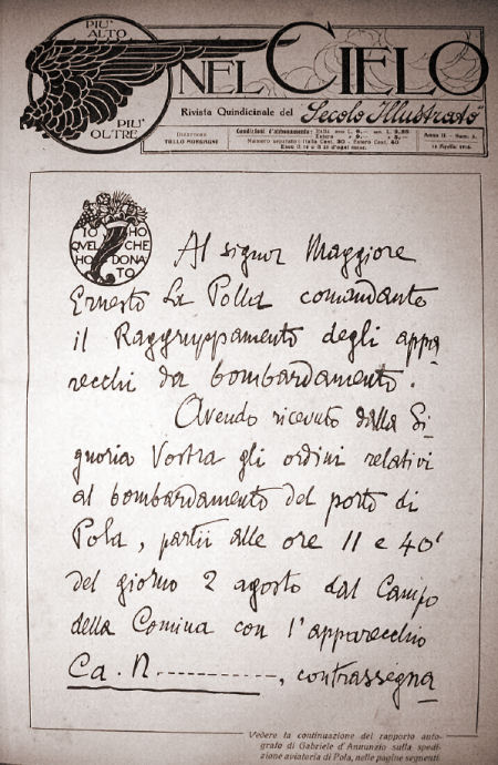 che fu fatto conoscere a tutti i nostri piloti, col quale si informava che da allora in poi gli apparecchi